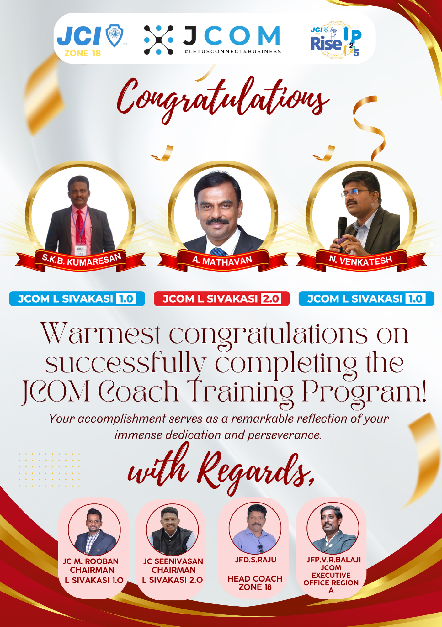 JCOM Sivakasi Table currently consists of two chapters, L1.0 and L2.0, each bringing unique contributions to the community. L1.0 focuses on fostering growth through collaboration, while L2.0 emphasizes expanding networking opportunities and enhancing skills. Both chapters work together on common activities such as joint meetings, workshops, and networking events, providing members with valuable learning experiences and opportunities for business development.